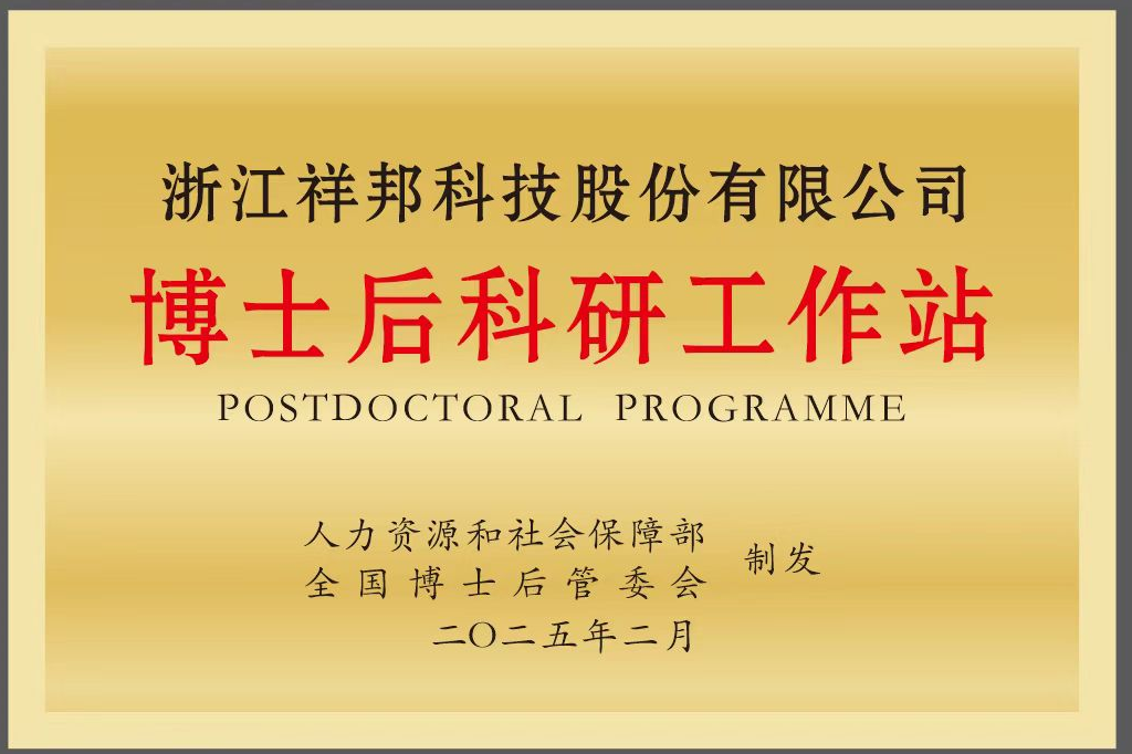 2025年2月經國家人社部、全國博士后管理委員會聯合批準,祥邦科技正式設立國家級博士后科研工作站。這一里程碑距2023年3月建成浙…